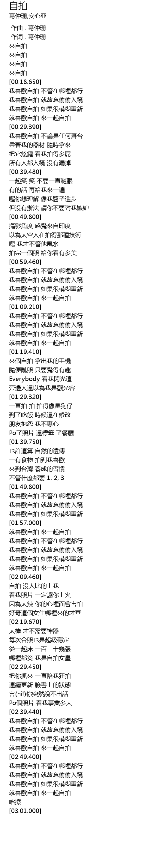 | [02:57.220] | 就喜歡自拍 來一起自拍 |