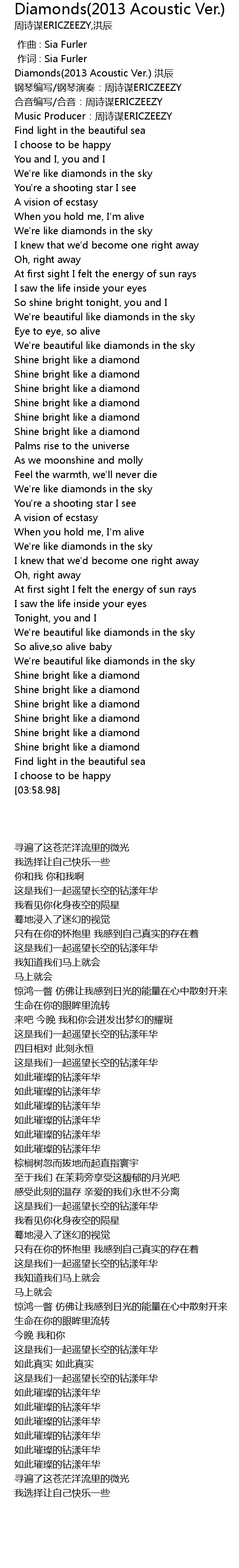 | [00:01.10] | Diamonds 2013 Acoustic Ver. hong chen |