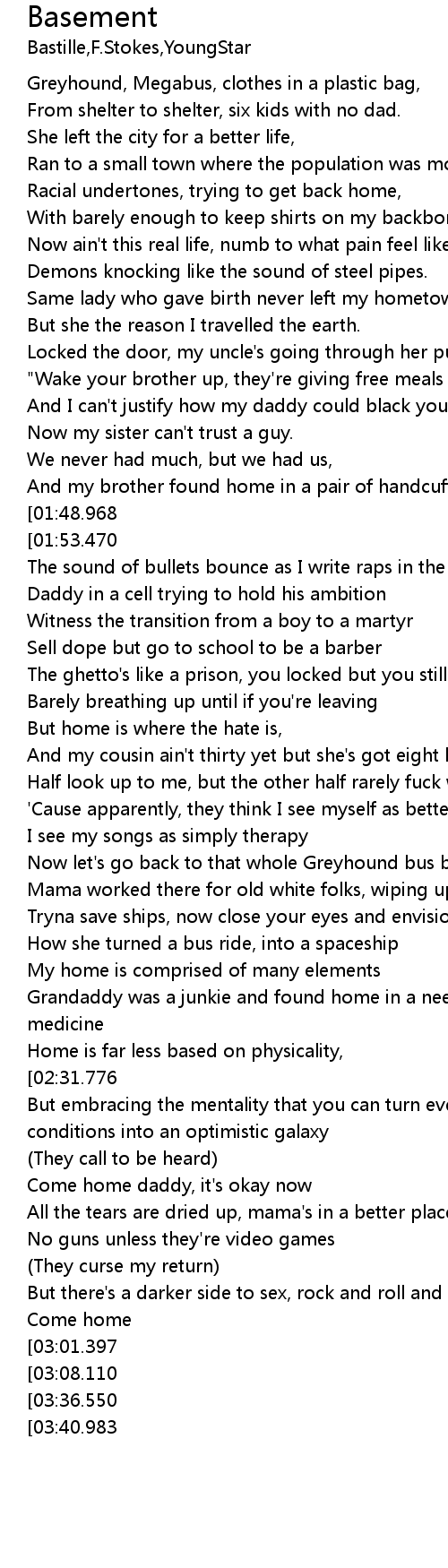 | [02:13.464] | Grandaddy was a junkie and found home in a needle filled with daily medicine |