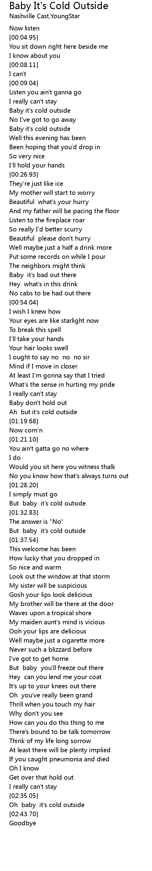 But baby it's cold outside |
