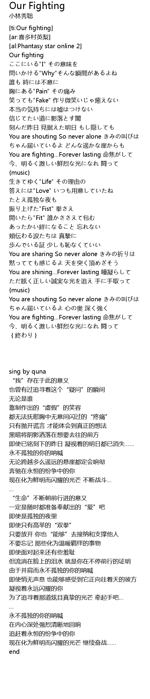 | [03:29.260] | You are fighting... Forever lasting ming jiao |