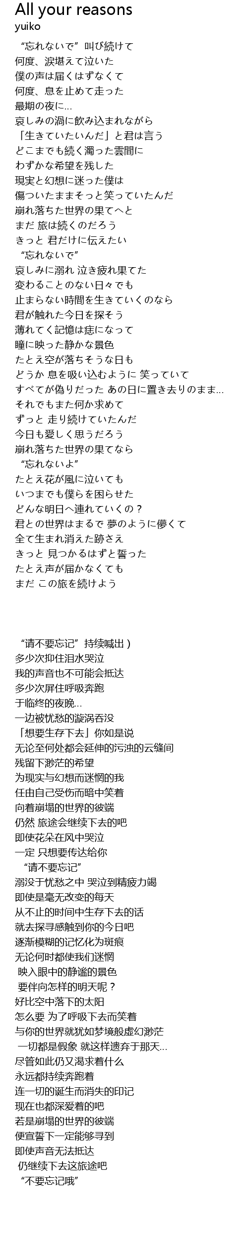 | Song | All your reasons |