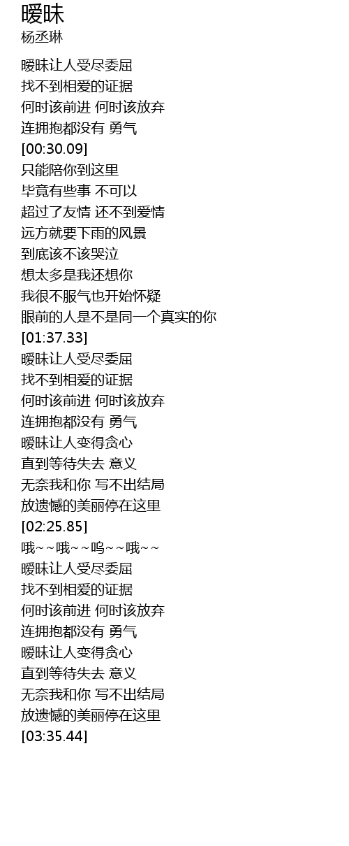 | [01:38.95] | 暧昧让人受尽委屈 |