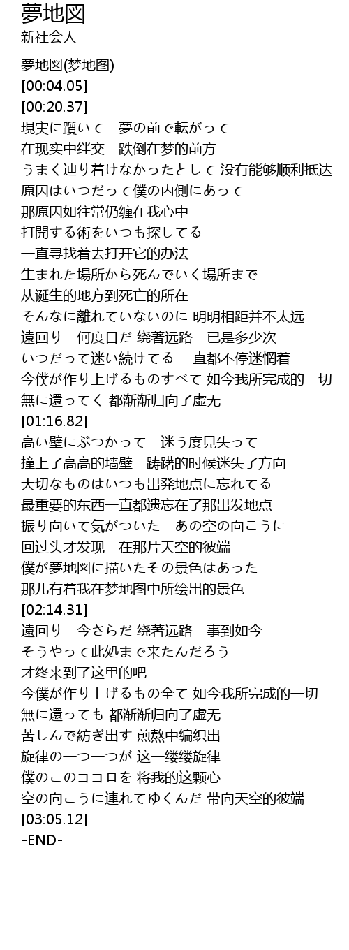 | [00:00.92] | 夢地図(梦地图) |