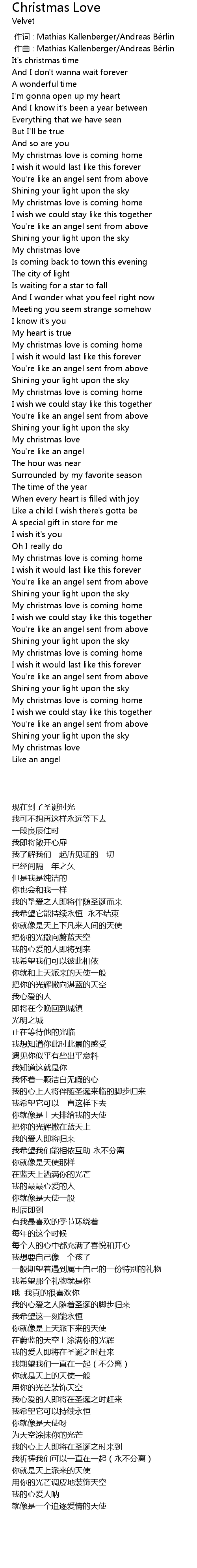 | [00:32.28] | My christmas love is coming home |