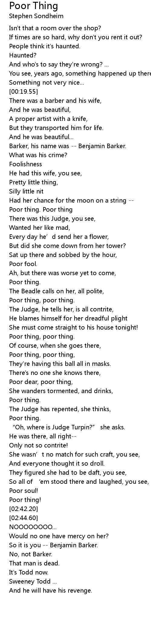 | [02:14.00] | “Oh, where is Judge Turpin?” she asks. |