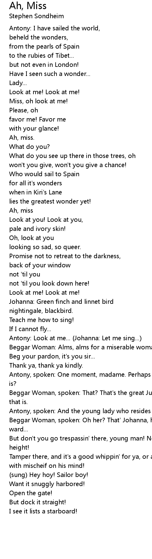 Antony, spoken: And the young lady who resides there? |