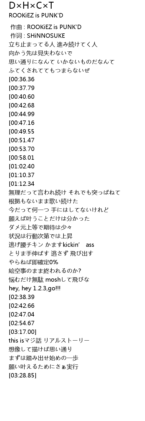| [00:00.00] | 作曲 : ROOKiEZ is PUNK'D |