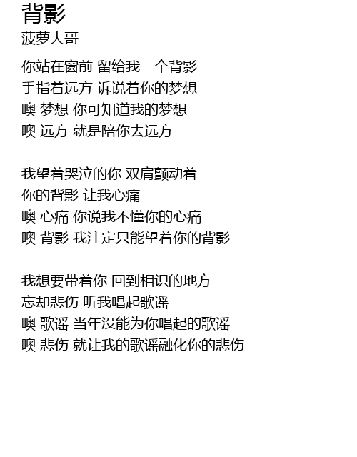 | ō bèi yǐng wǒ zhù dìng zhǐ néng wàng zhe nǐ de bèi yǐng | |