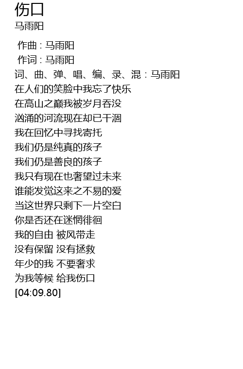 | [00:00.333] | 作词 : 马雨阳 |