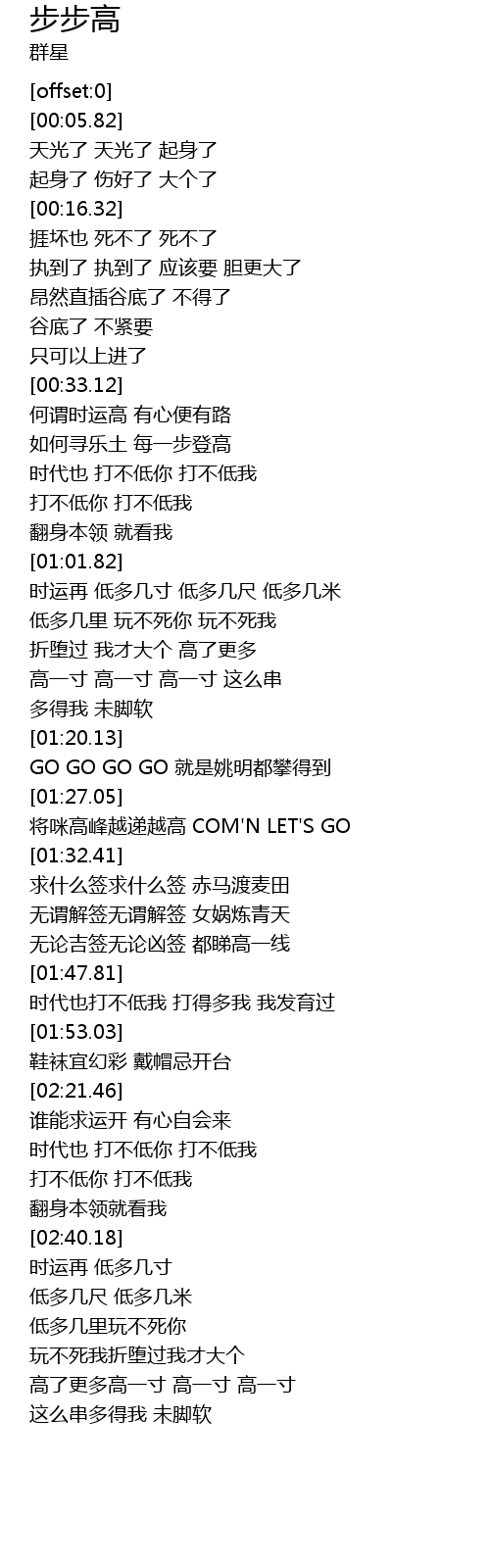 | [01:23.51] | GO GO GO GO 就是姚明都攀得到 |