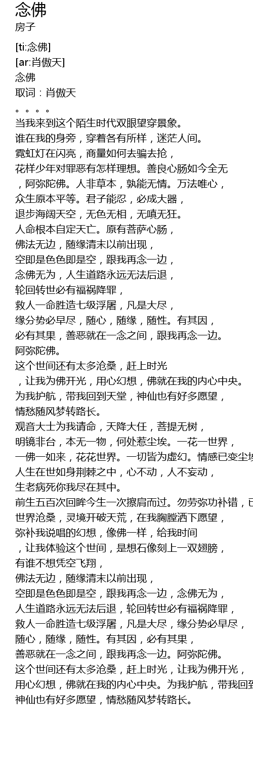 | [02:04.562] | shan e jiu zai yi nian zhi jian, gen wo zai nian yi bian. e mi tuo fo. |