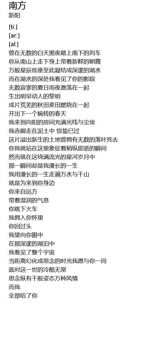 | [00:04.15] | 曾在无数的白天黑夜踏上南下的列车 |
