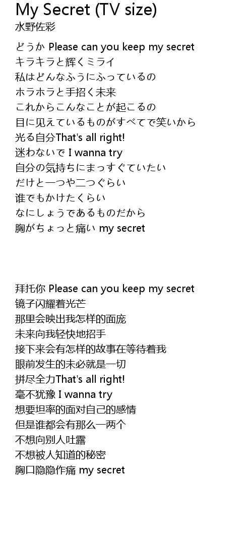 | [01:11.61] | 胸がちょっと痛い my secret |