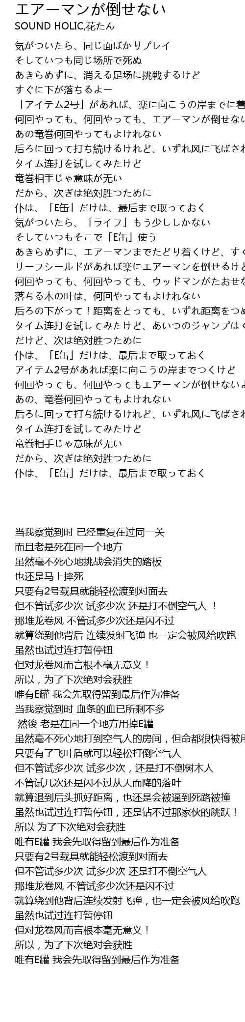 | [03:18.680] | 何回やっても、何回やってもエアーマンが倒せないよ |