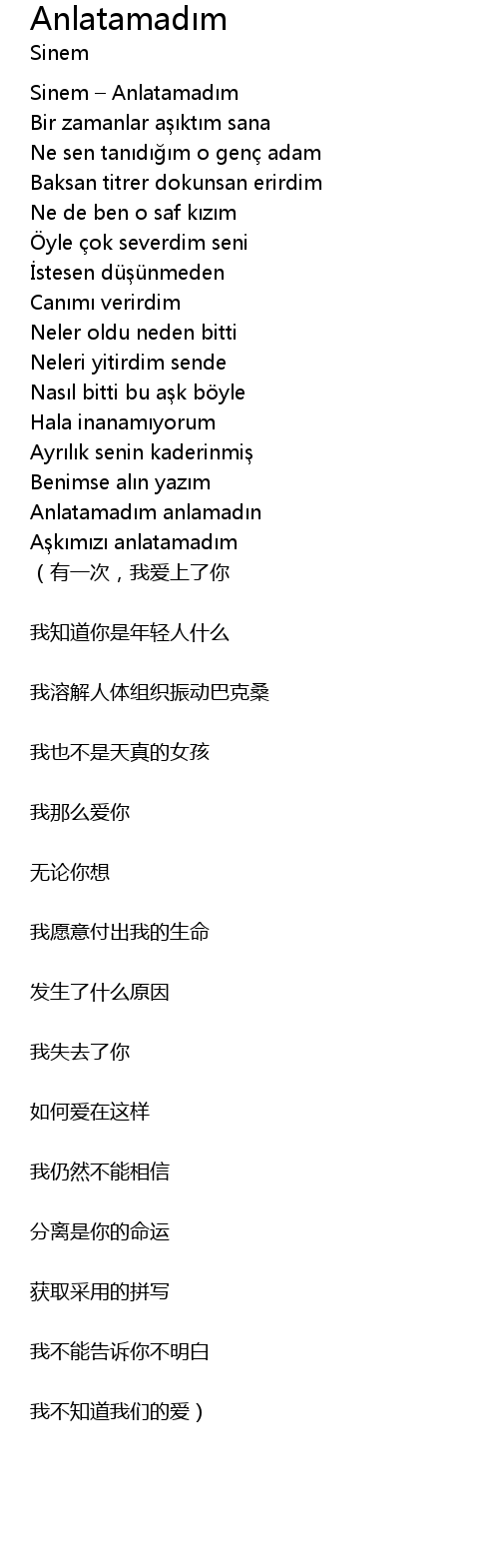 | Sinem – Anlatamadım | |