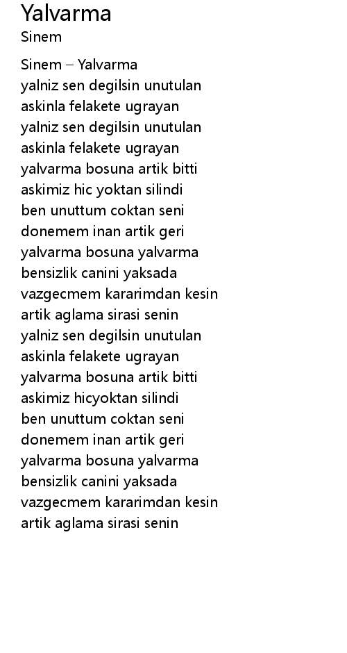 | Sinem – Yalvarma | |