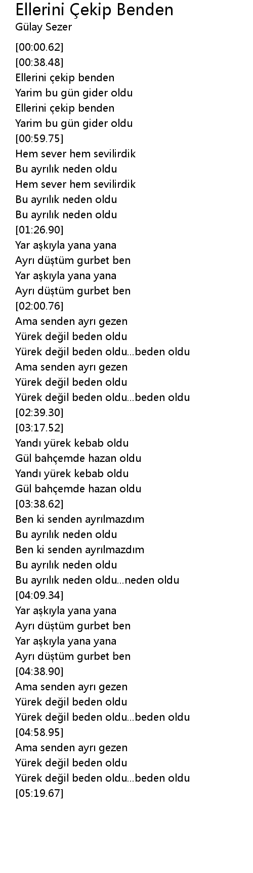 | [02:10.67] | Yürek değil beden oldu...beden oldu |