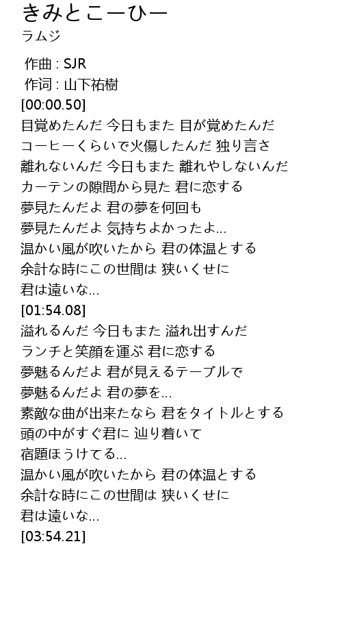 | [00:56.54] | カーテンの隙間から見た 君に恋する |