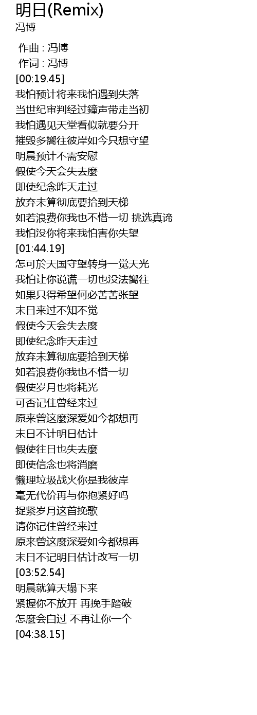 | [00:00.00] | 作曲 : 冯博 |