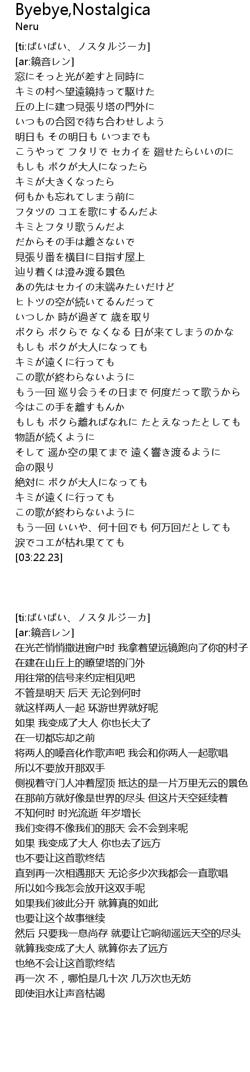 | [02:58.81] | 絶対に ボクが大人になっても キミが遠くに行っても |