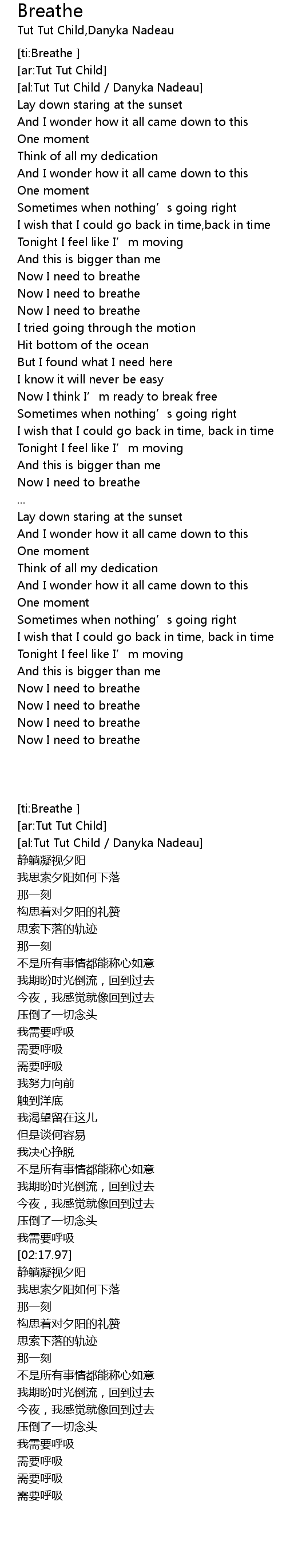 | [02:09.66] | Now I need to breathe |