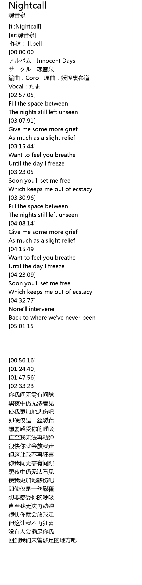 | [01:47.56] | 編曲:Coro 原曲:妖怪裏参道 |