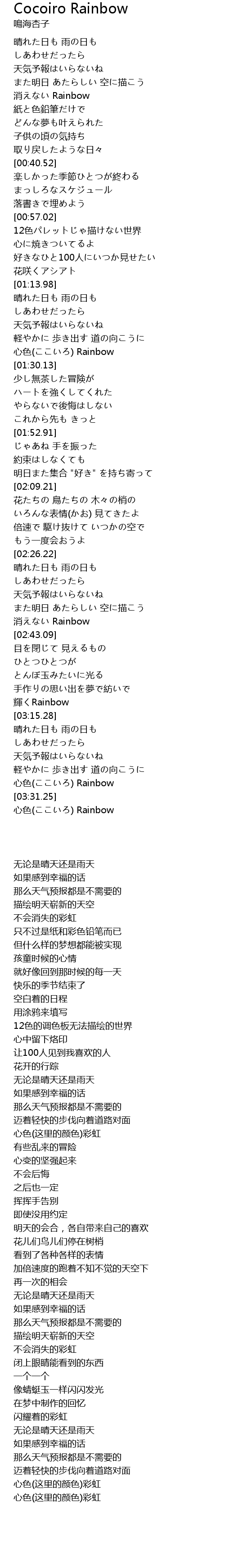 | [03:33.16] | 心色(ここいろ) Rainbow |