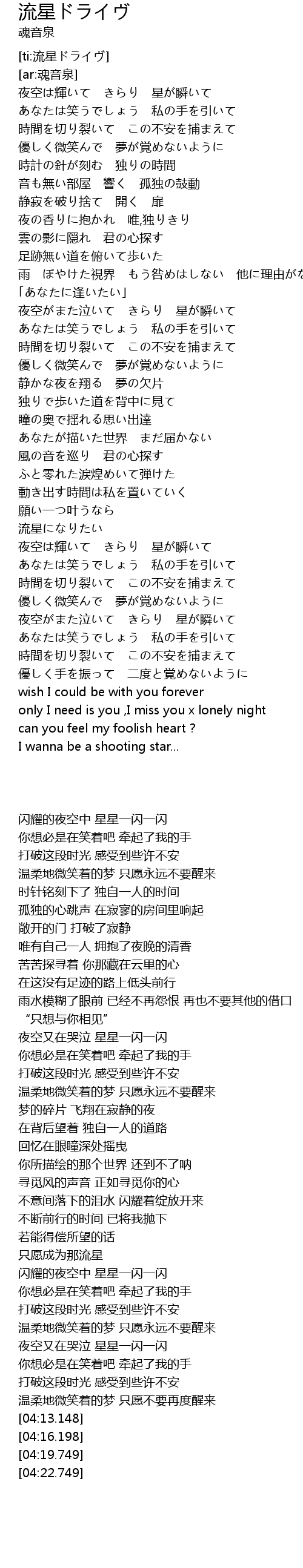 | [04:22.749] | I wanna be a shooting star... |