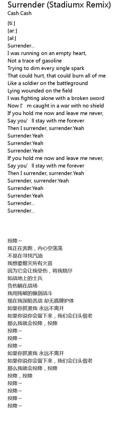 | [03:29.96] | Surrender, surrender. Yeah |