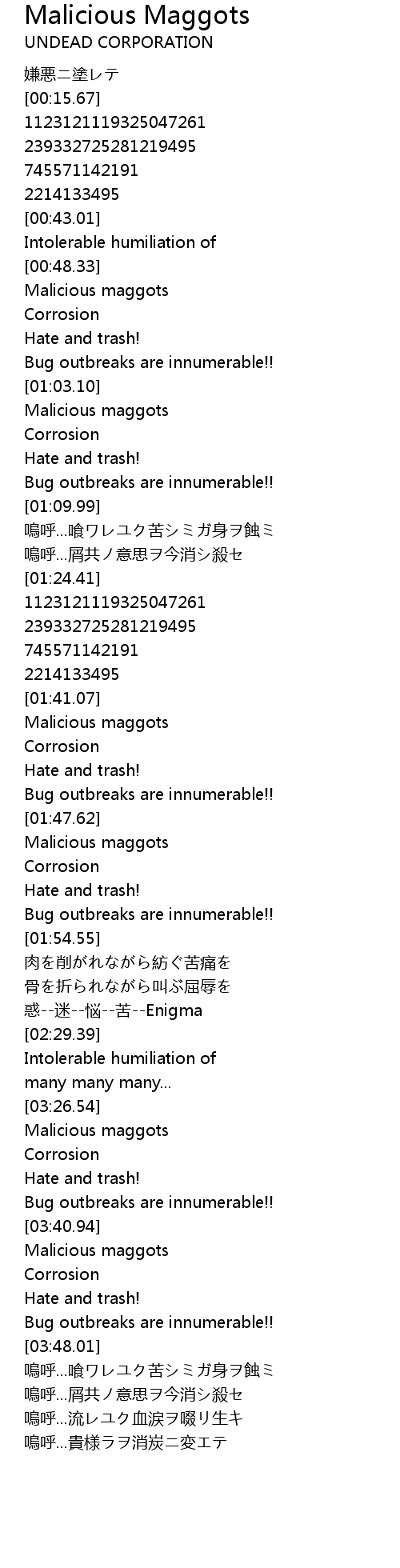 | [03:34.62] | Malicious maggots |