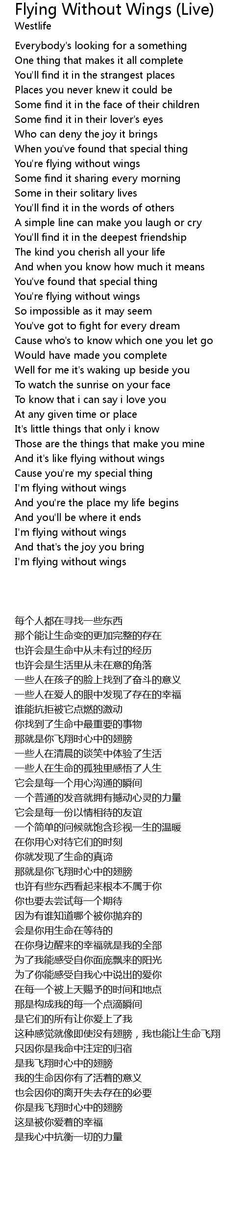 You're flying without wings |