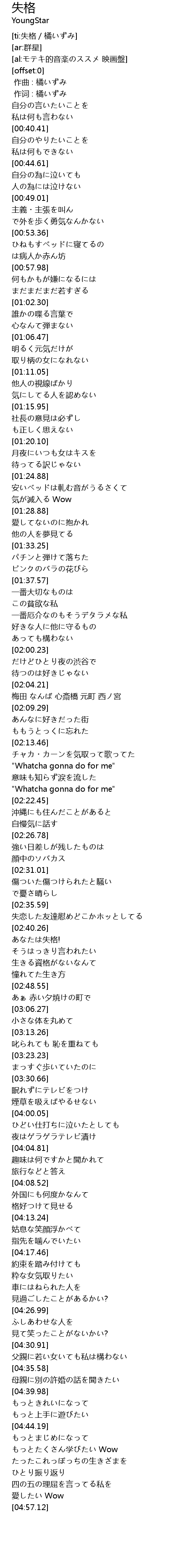 | [ti:失格/橘いずみ] | |