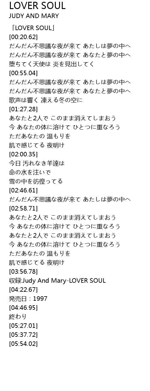 | [04:16.07] | 収録:Judy And Mary-LOVER SOUL |