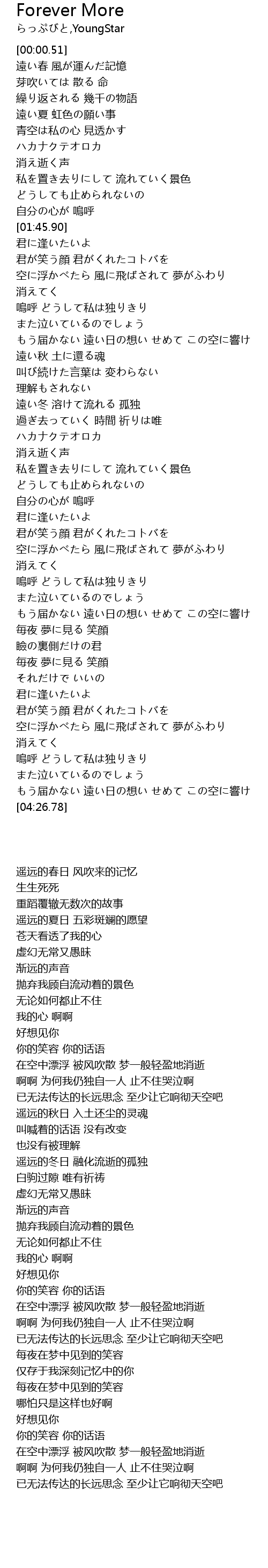 | [04:19.20] | もう届かない 遠い日の想い せめて この空に響け |