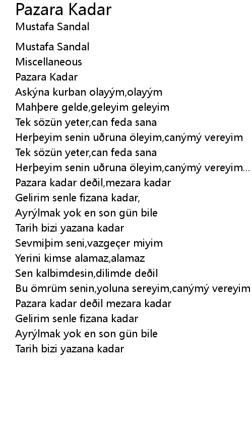 | Song | Pazara Kadar |