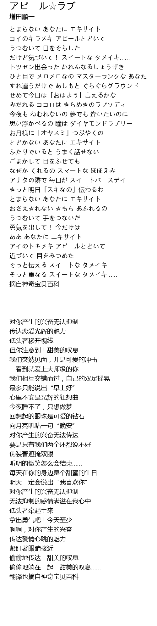 | [03:23.51] | アイのトキメキ アピールとどいて |