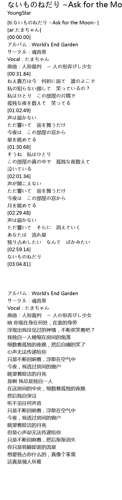 | [ti:ないものねだり ~Ask for the Moon~] | |