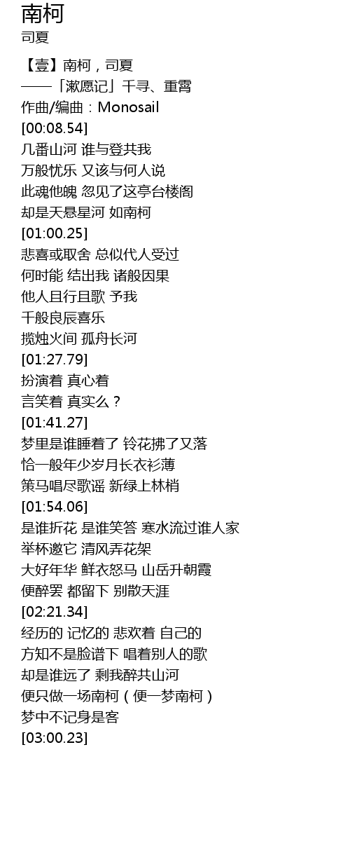| [00:55.41] | 却是天悬星河 如南柯 |