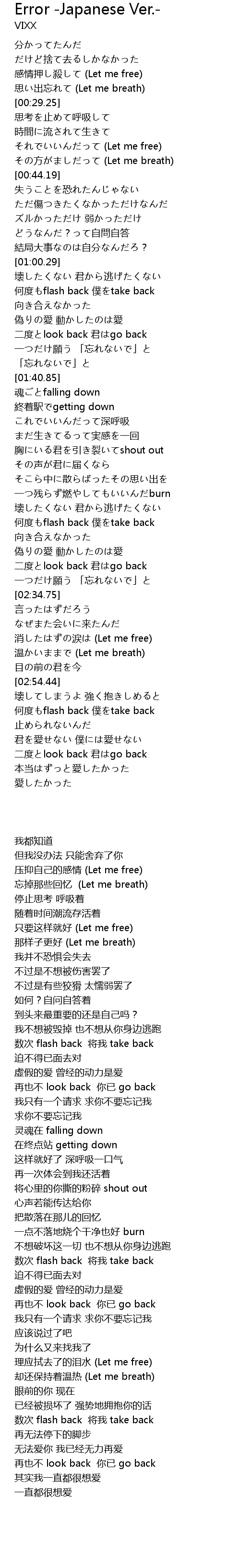 | [00:25.01] | 思い出忘れて (Let me breath) |