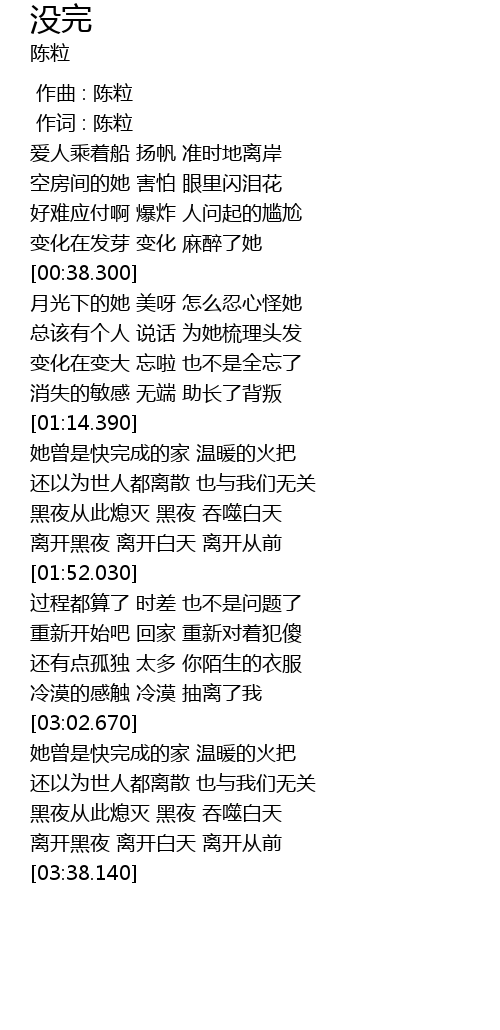 | [00:00.00] | 作曲 : 陈粒 |