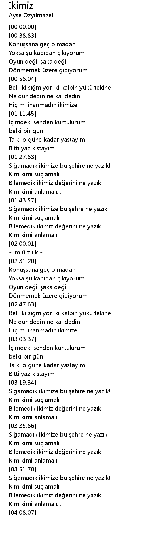 | [03:19.78] | Sığamadık ikimize bu şehire ne yazık! |