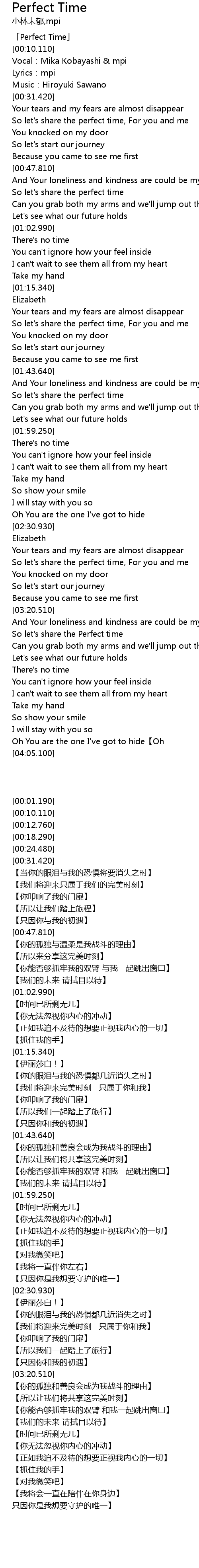 | [00:12.760] | Vocal:Mika Kobayashi & mpi |