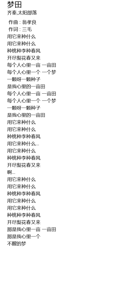 | [01:35.99] | 每个人心里一亩 一亩田 |