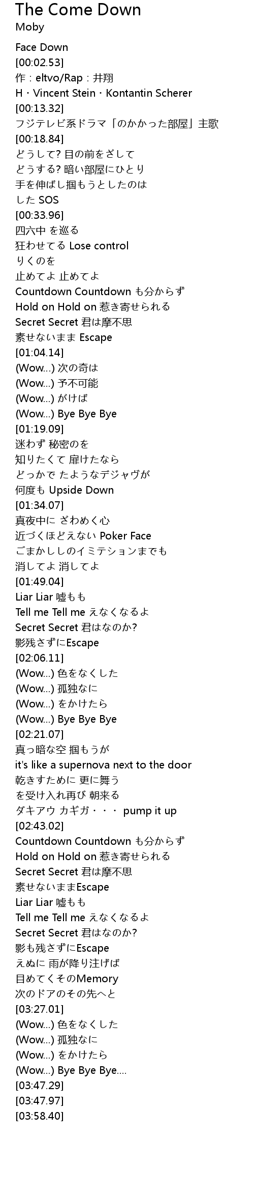 | [00:15.02] | フジテレビ系ドラマ「のかかった部屋」主歌 |