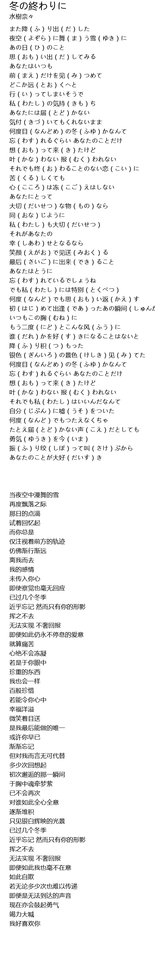 | [03:26.670] | 何度目(なんどめ)の冬(ふゆ)かなんて |