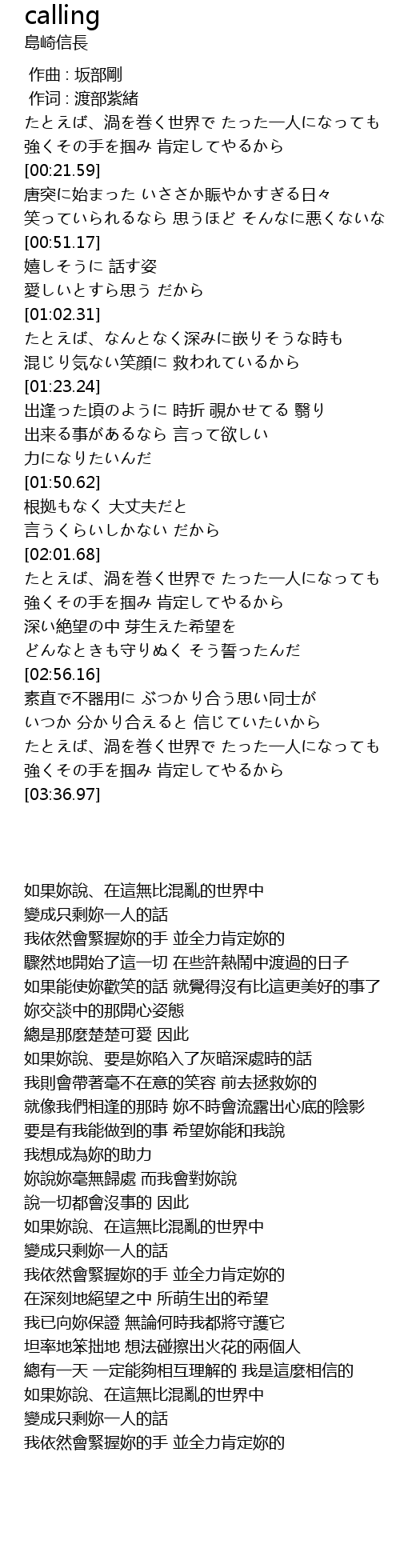 | [03:16.20] | たとえば、渦を巻く世界で たった一人になっても |