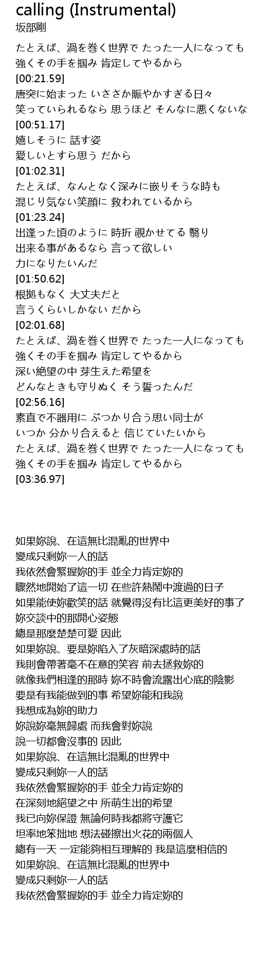 | Song | calling (Instrumental) |