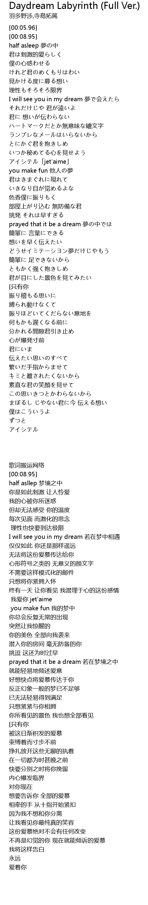 | [00:17.54] | half asleep 夢の中 |