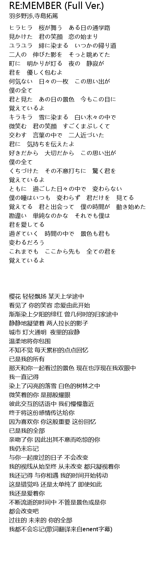 | [03:12.49] | 覚えてる 君と出会って 僕の時間が 動き始めた |